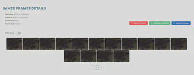 In the Saved frames section, you can view your saved frames from camera streams and videos. You can download them, upload them to a dataset, or delete them.