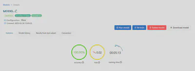 The effectiveness of the training can be evaluated when it is stopped. To learn how to read the results, read the article Tracking model performance.