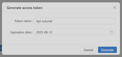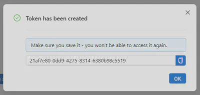 The generated token is displayed only once, so make sure you copy it, as you will not be able to see it again once you close the window.